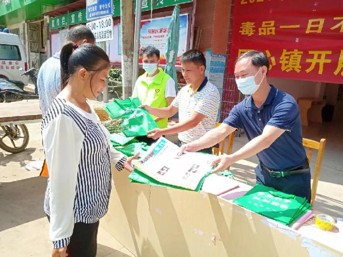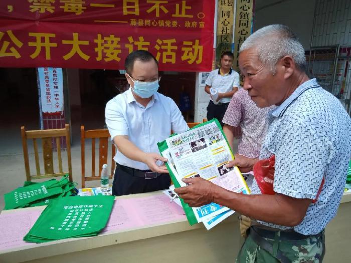 9月18日,同心镇在镇区主要街道开展宣传禁毒、反邪教、防诈骗、群众安全感等活动,进一步提高广大人民群众参与禁毒、反对邪教等意识,增强识毒防毒、认清邪教本质的能力,使禁毒、反邪教相关知识深入人心。活动以悬挂横幅、设立咨询站台、发放宣传资料等方式向广大人民群众宣传识毒识邪、防毒防邪、拒毒反邪以及防诈骗的相关知识和法律法规。在现场,镇党委书记蒙文森、党委副书记、镇长覃远斌向群众介绍毒品的种类,详细讲解毒品和邪教的危害性,宣传相关知识,提醒广大群众不要出入治安复杂的场所,如发现有吸毒、宣传邪教人员,要自觉抵制并及时与派出所联系。并号召大家积极加入禁毒志愿者的行动中来。镇班子领导带领禁毒志愿者、镇村干部联动走访,开展入户宣传活动,使群众抬头可见禁毒宣传,形成全民参与的多元化禁毒宣传方式,调动全镇社会力量营造全民知毒、防毒、拒毒、禁毒的社会氛围。