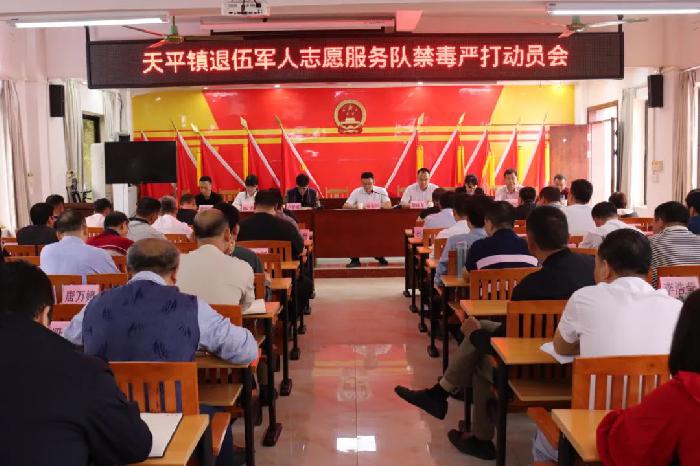 图为天平镇退伍军人志愿服务队禁毒严打动员会现场