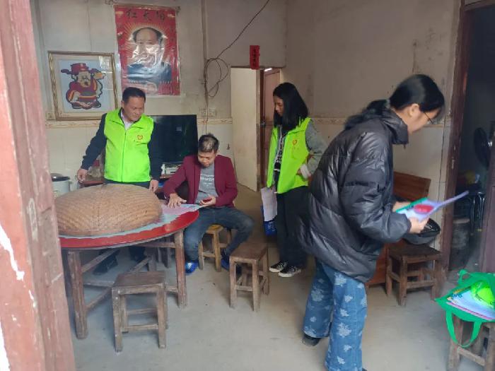 图为镇禁毒办社工林焕钦(2021年退伍士兵)入户宣传禁毒政策