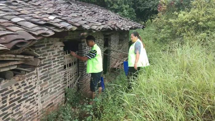 图为塘冲村干部覃强(退伍军人)在排查易制毒场所