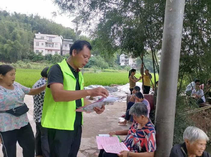图为罗垌村干部邓汉坚(退伍军人)向群众宣传禁毒知识