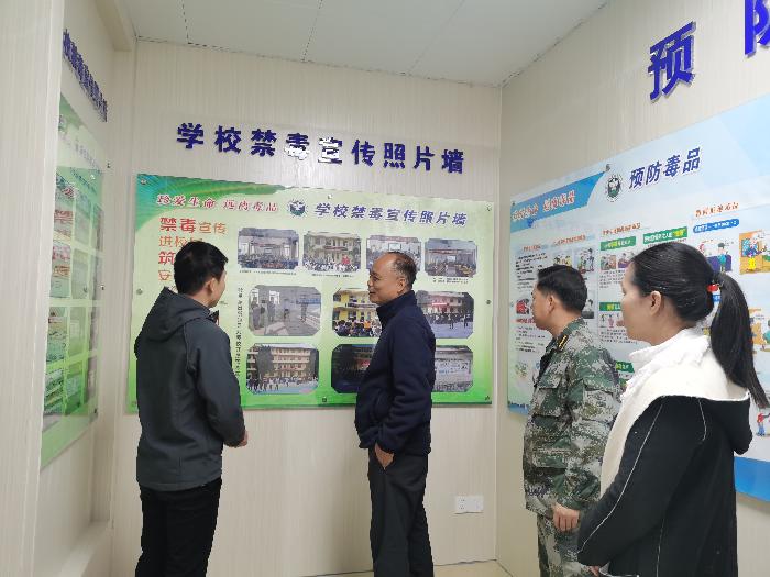 随后张向东一行到岭景初中检查禁毒教育基地开展情况,并指通过禁毒教育基地在青少年的心里种下禁毒的种子,有效地提高青少年识毒、防毒、拒毒的能力,进一步营造全民参与禁毒的浓厚氛围,扎实筑牢我镇禁毒防线。