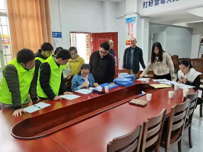 检查组检查吸毒人员一人一档、广西禁毒智能化系统后对我镇禁毒专职社工进行一次详细的培训,使社工更加清楚去管控联系吸毒人员,做到底数清,现状明。