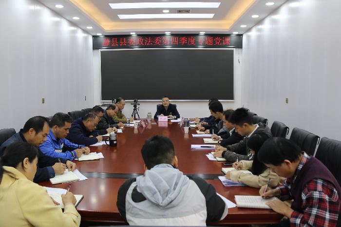 12月13日,藤县县委政法委机关开展“一把手”讲党课活动。县委常委、政法委书记于新为县委政法委机关全体干部上了一堂主题教育专题党课。