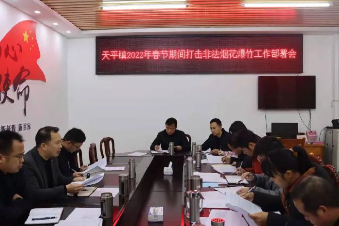 为切实加强我镇烟花爆竹“打非”力度,全面做好2022年春节烟花爆竹销售旺季安全管理工作,确保广大人民群众能够过上一个欢乐、祥和、愉快的春节。118日,天平镇政府组织镇乡村建设综合服务中心、镇综治办、天平市场监督管理所、镇基干民兵应急排组成联合执法队,大力开展烟花爆竹“打非”专项行动,镇党委委员、副镇长陈鹏宇参加。