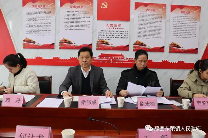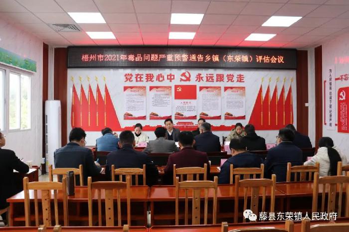 1月20日,梧州市禁毒办主任梁伟成、副主任陈宏清带领考评组到东荣镇开展毒品问题严重预警通告乡镇禁毒工作考核验收。藤县县委常委、政法委书记于新、藤县县委政法委副书记朱庭源、藤县县委政法委副书记王鹏、东荣镇党委书记何达龙、东荣镇党委副书记、镇长李兵随同考评。
