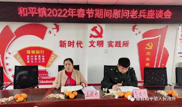1月27日,和平镇党委、政府在三楼会议室召开2022年春节双拥暨信访维稳政策法规宣传座谈会,和平镇人大主席玉献妙、党委政法委员、武装部长李佳鸿等在家领导班子与退役军人、现役军人和军属代表们共叙鱼水深情。