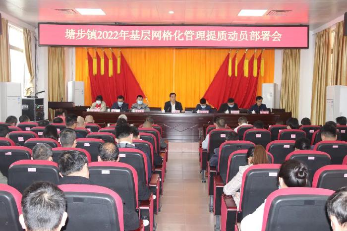 为进一步贯彻落实上级关于加强和创新社会治理的部署要求,稳步推进我镇社会治理网格化工作,2022年3月2日上午,塘步镇召开基层网格化管理提质动员部署会。镇党委书记凌用全主持会议并讲话,镇领导班子成员、镇直(协)管各单位负责人,各村(社区)党组织书记、挂村镇干部等70余人参加了会议。