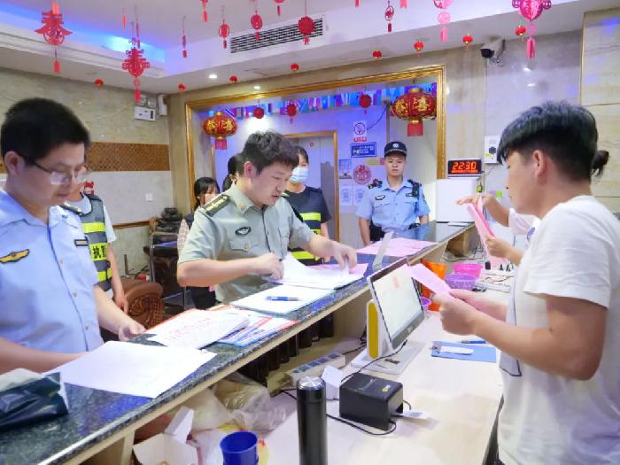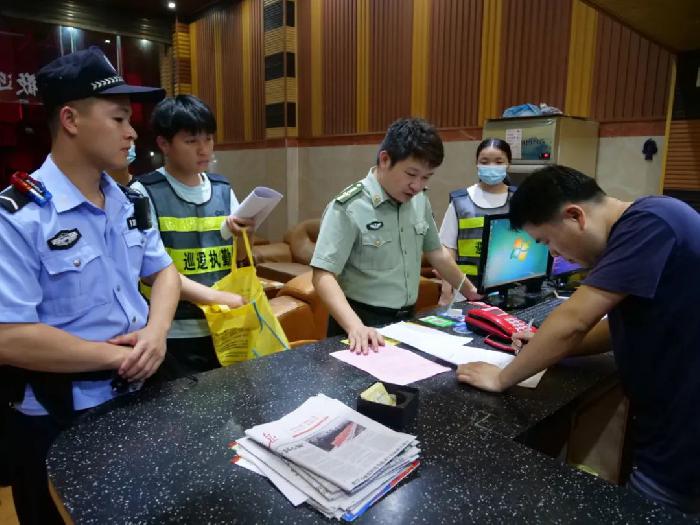 为加强辖区公共复杂场所无毒管理,创建无毒示范单位。5月17日晚,和平镇对辖区内公共复杂场所从业人员开展毒品常识培训活动以及涉毒排查,镇党委政法委员、武装部长李佳鸿率队开展巡查排查。