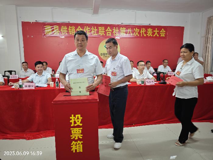 大会在雄壮的国歌声中拉开序幕,大会表决通过了《选举办法》(草案)、《理事会工作报告》(草案)、《监事会工作报告》(草案)、《章程》(草案)的决议(草案),投票选举产生藤县供销合作社联合社第八届理事会、监事会成员。