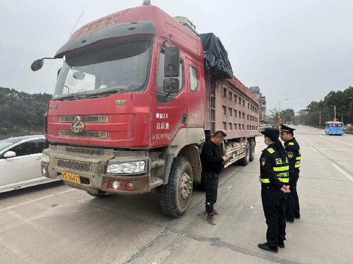 为进一步巩固对道路交通运输超载超限的整治成果,及时消除由违法超载超限、货车行驶中不加盖篷布等行为给道路交通安全带来的危害,预防和减少交通事故,确保道路交通安全,切实维护公路建设成果,提高空气质量。根据《广西壮族自治区交通运输厅等13部门关于印发自治区治理车辆超限超载三年行动方案(2023—2025年)的通知》、县委县政府部署要求,藤县交通运输综合行政执法大队联合县交警大队、农村农业局、自然资源局、养护中心等5个部门组成执法小分队在全县范围内开展集中整治超载超限、公路污染大行动。