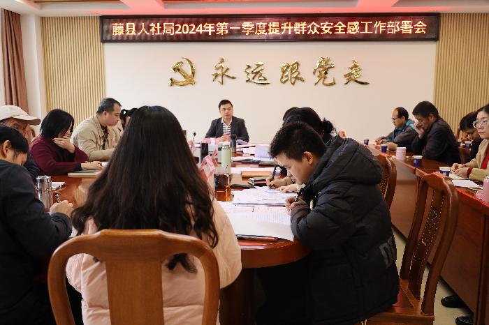 会议传达了自治区、市、县2024年提升群众安全感有关文件精神和工作要求,解读了人社局提升群众安全感工作责任清单。