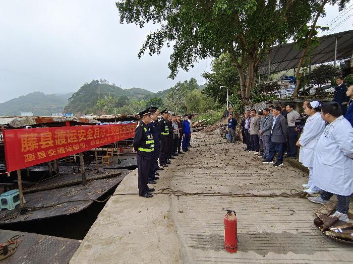 为进一步加强辖区渡运安全监管,保障人民群众生命财产安全,提高应对水上交通安全突发事件的组织、协调、处置水平和应急指挥能力,增强应急队伍处置和安全保护技能,应急反应能力,3月15日上午,由县交通运输局牵头,联合县应急局、县海事处、金鸡镇政府等部门在藤县金鸡镇上码头,举行了2024年渡运安全月水上救援应急演练。